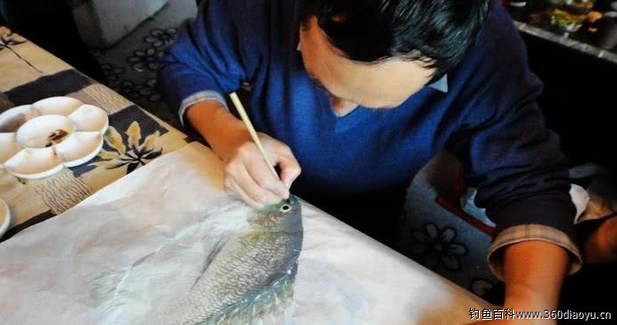 然后是画鱼眼,鱼的眼睛在拓鱼之前最好用照相机照个照片,再画眼时可以参考,这条鱼是否精神漂亮,鱼眼是非常关键的。