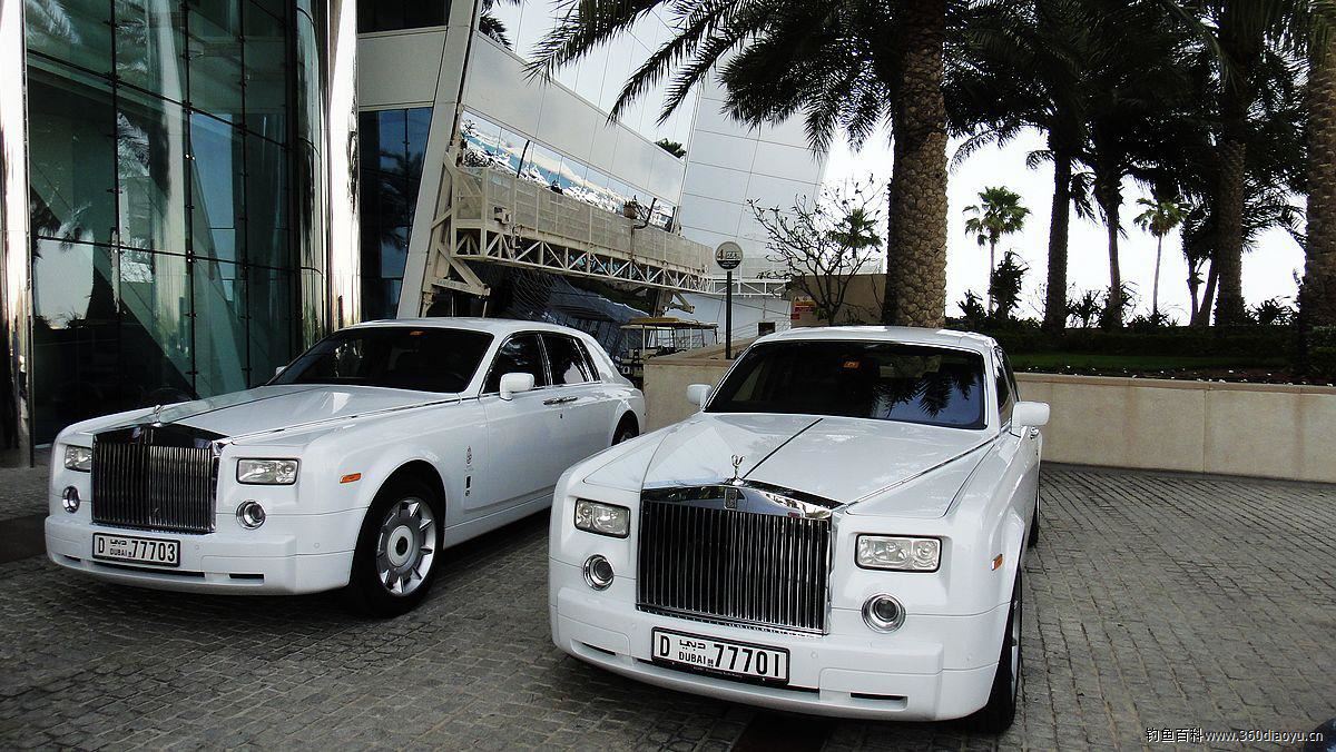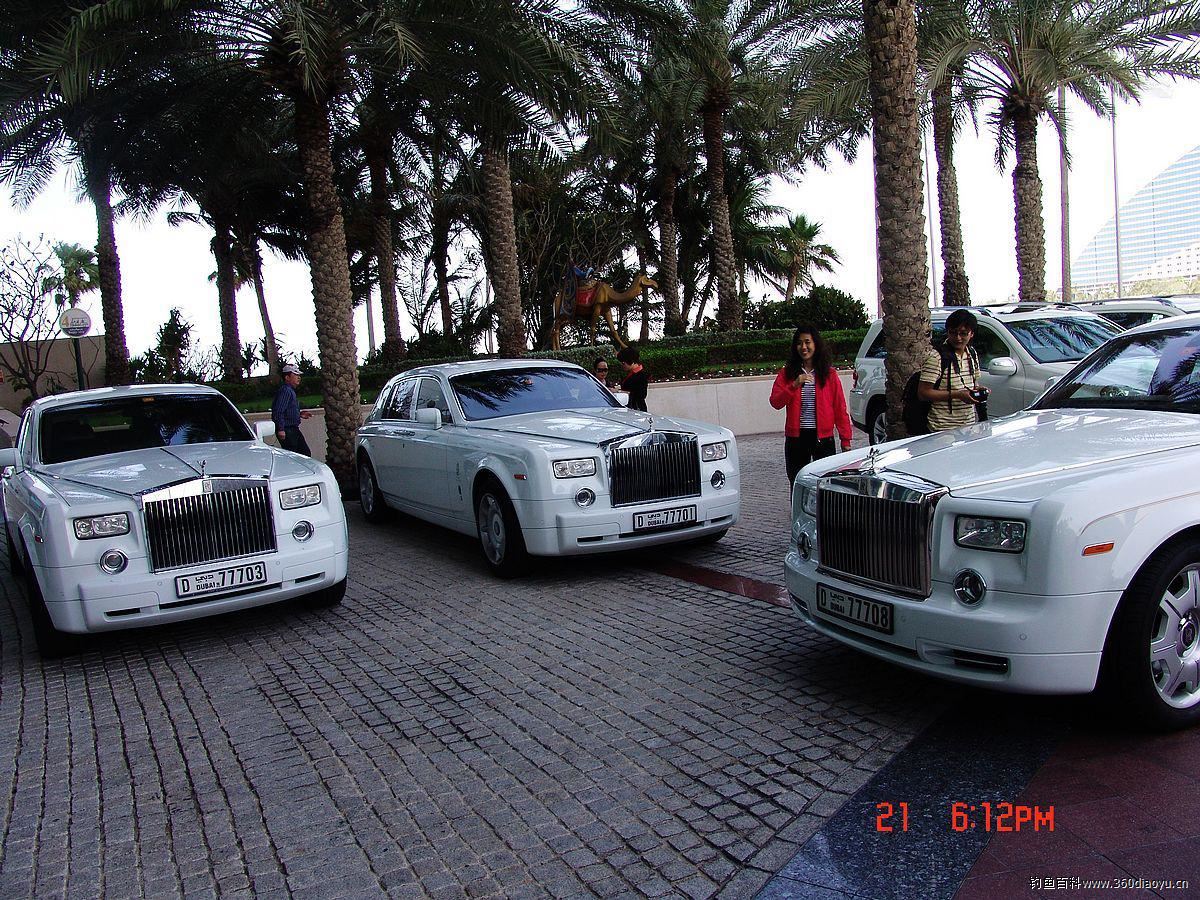 酒店帆船外的劳斯莱斯车队。