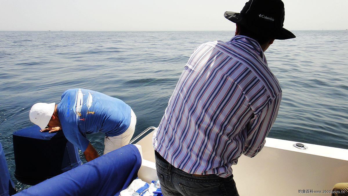 船长手急眼快搭钩上鱼。