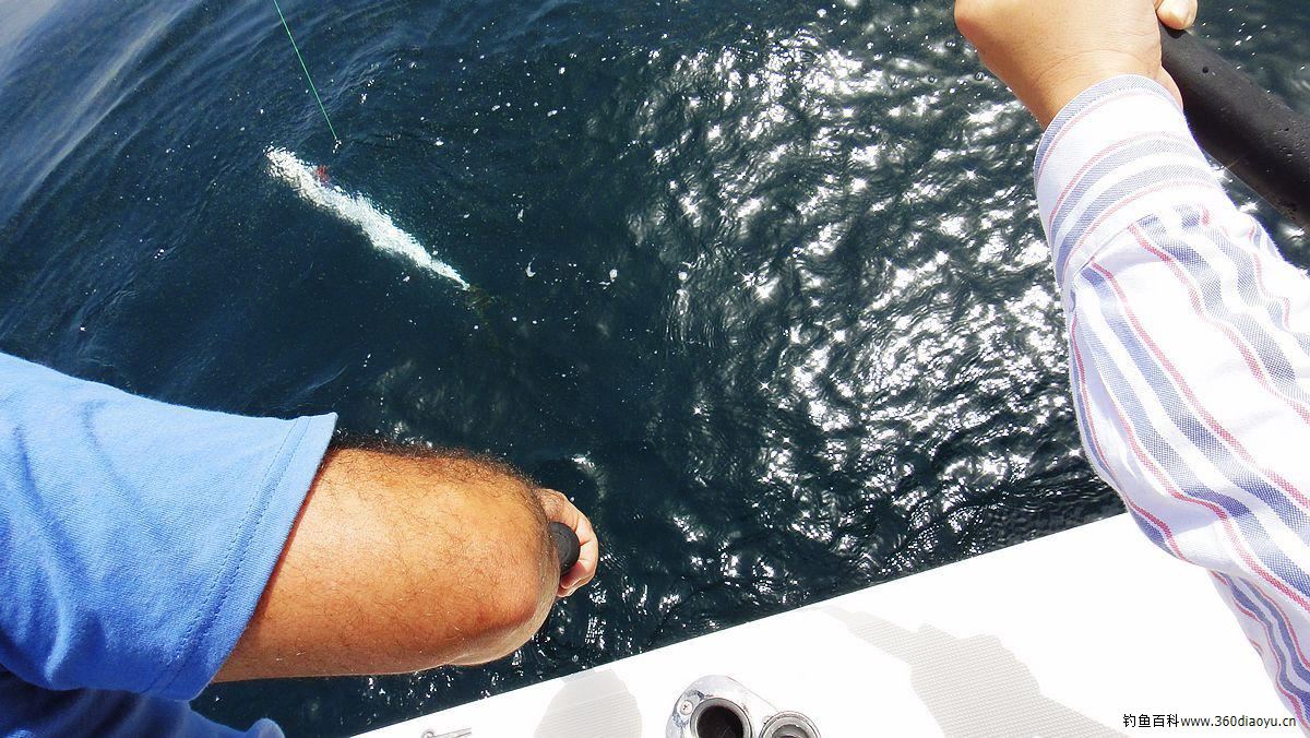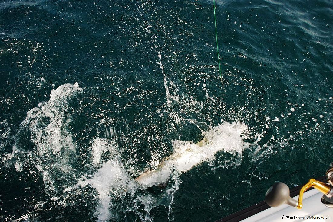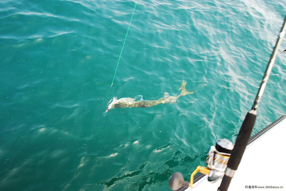 终于有一条马鲛上钩了,我在快速收线,它在左冲右突,眼看着已经拉到了船旁,船长开始拉起子线,只听见“啪”的一声线断了。船长握着断线,不由长叹一声,100磅的线竟然也会……